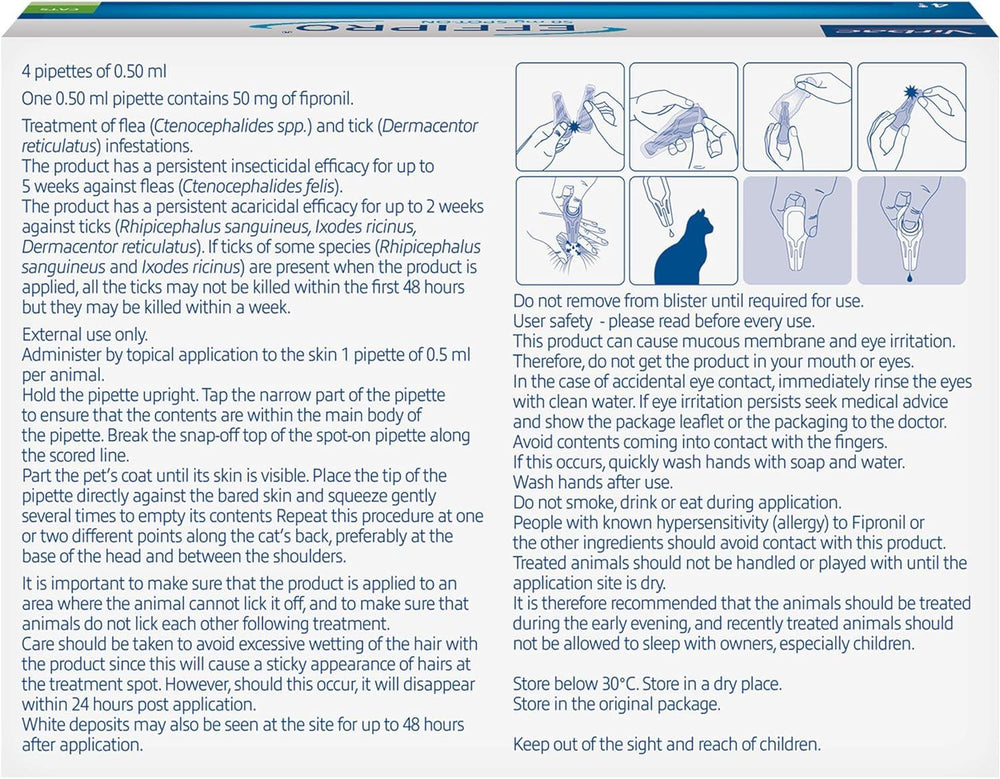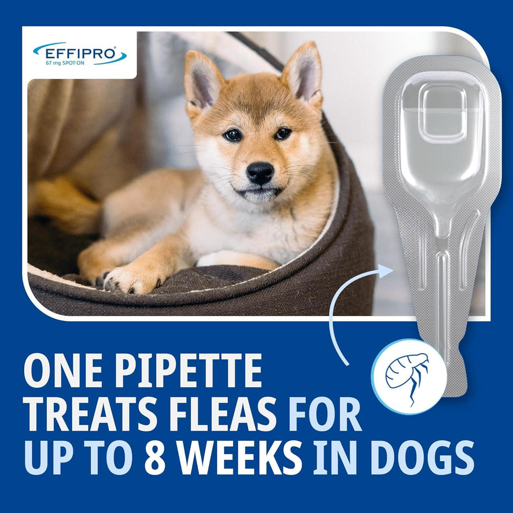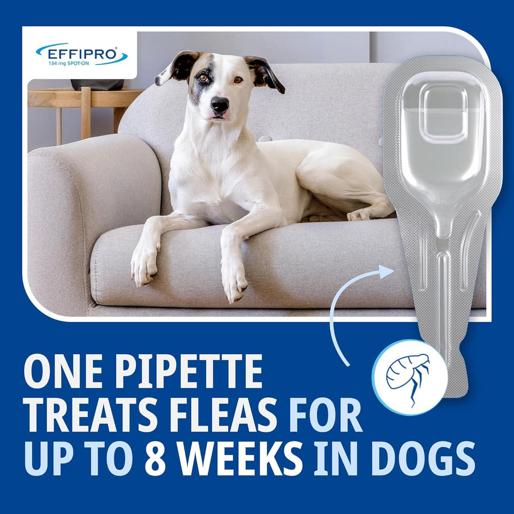 Effipro protects dogs from fleas for up to eight weeks and from ticks for four weeks and it protects cats from fleas for up to five weeks and from ticks for two weeks. Don't forget though that fleas are now a year round problem so to protect your pet, you must treat them regularly. A preventative health regime is very important. Many vets will recommend monthly treatment for fleas where fleas are known to be a problem. Gaps in treatment can lead to infestations in our homes and these aren’t easy to control! But they can be prevented by careful regular flea control on your pet, and protecting your home.