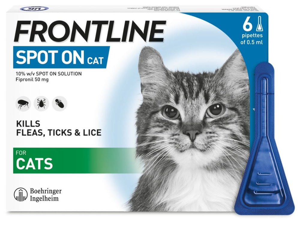 FRONTLINE SPOT ON is a clinically proven veterinary medicine that is available in 1-dose, 3-dose, and 6-dose packs. It can be applied to cats and dogs from 8 weeks of age that weigh at least 1 kg. It can also be used on pregnant and nursing cats and dogs.
