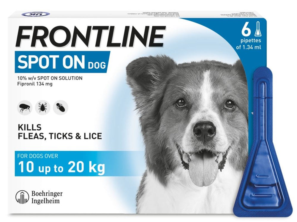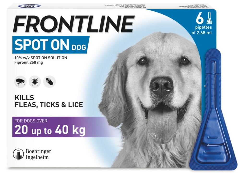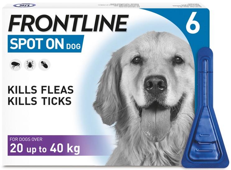 FRONTLINE SPOT ON for Dogs is the original formula from the UK's leading flea and tick brand*, FRONTLINE. It kills fleas and ticks on your dog to help protect them from the discomfort and diseases these parasites cause. Use it every 4 weeks for optimal protection.**