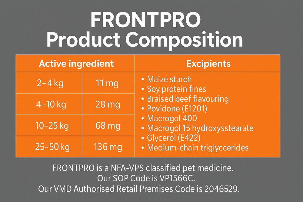 We are an authorised SQP Retailer (Premises Code: 2046529) specialising in high-quality veterinary medicines for companion pets, including cats, dogs, rabbits, and ferrets. As certified by the VMD (SQP Code: VP1566C), we ensure compliance and authenticity, offering trusted products like FRONTPRO and TRI-ACT to keep your pets protected.