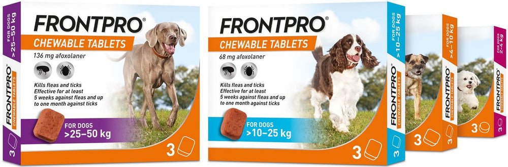 New FRONTPRO Chewable Tablets from the makers of FRONTLINE. Effective in as little as 8 hours, FRONTPRO helps protect your dog from fleas and ticks for 1 month. Keeping your dog healthy and happy, so you can enjoy more moments of closeness. Because nothing should come between you.