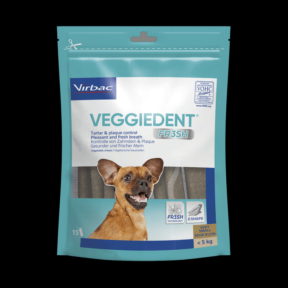 VEGGIEDENT® FR3SH™ Dental Chews offer a healthy solution in removing plaque and tartar and helps to keep your pet’s breath FR3SH.